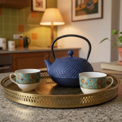 Modrá zdobená litinová konvice s nerezovým sítkem o objemu 1,1 l. Litinová konvice udržuje stálou teplotu a čaj si tak udrží svou svěží chuť i vůni po mnohem delší...