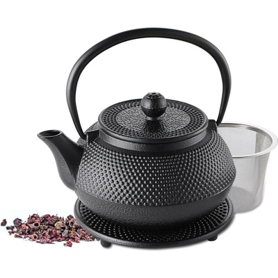 Litinová konvička na čaj v tradičním designu s praktickým nerezovým sítkem. Součástí je i litinový podstavec pro pohodlné a bezpečné servírování. s jemným nerezovým čajovým...