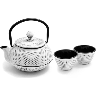 Litinová čajová konvice Arare v bílé barvě se dvěma šálky Velmi kvalitní a krásná čajová konvice s japonským vzorem vyrobená z litiny včetně čajového sítka. Tato litinová...