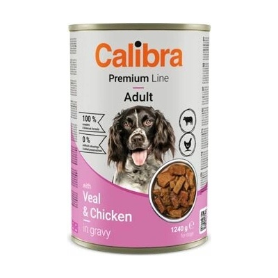 Calibra Dog Premium konz. with Veal & Chicken 1240g UVEDENÁ CENA ZA PRODUKT PLATÍ POUZE PŘI ODBĚRU MIN. 24 KUSŮ! Prémiové vlhké krmivo Calibra Premium Line - masová novinka...