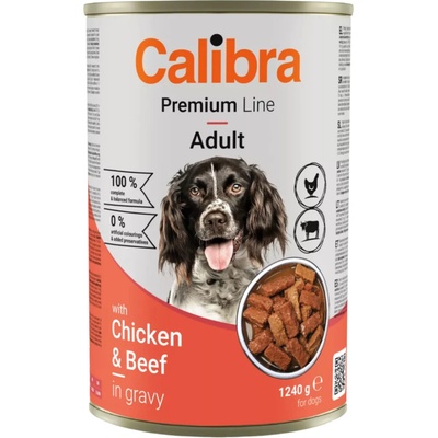 Calibra Dog Premium konz. with Chicken & Beef 1240g UVEDENÁ CENA ZA PRODUKT PLATÍ POUZE PŘI ODBĚRU MIN. 24 KUSŮ! Prémiové vlhké krmivo Calibra Premium Line - masová novinka...