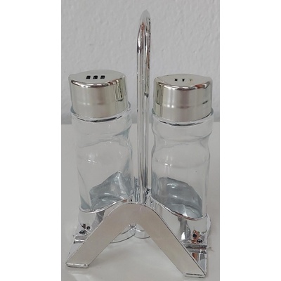 2 dílná dochucovací sada (slánka, pepřenka) o objemu nádobek 2 x 40 ml v plastovém chromovaném stojánku. Materiál sklo, kov, pochromovaný plast. Sada není vhodná do myčky...