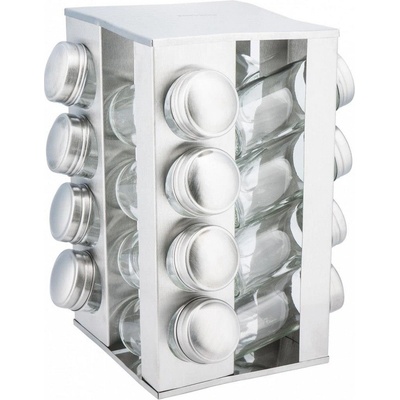 Otočný stojan na kořenky vyrobený z nerezové oceli v kombinaci se sklem. Moderní stojan na koření se 16 dózami na koření – pro větší pořádek a organizaci v kuchyni Stojan...