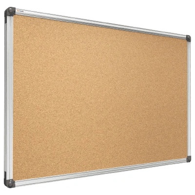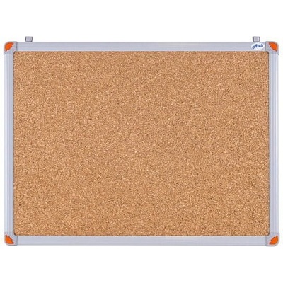 Korková nástěnka v hliníkovém rámu 90x60 cm, vyrobena z korku portugalské výroby na podkladu z dřevovláknité desky. Hloubka tabule je 10 mm a nelze ji probodnout...