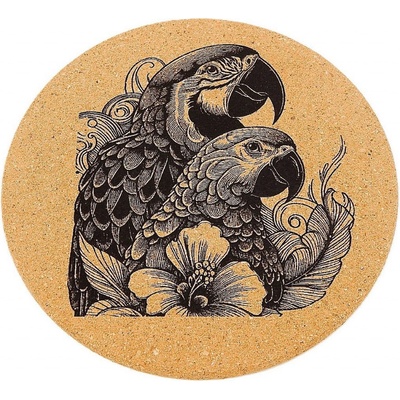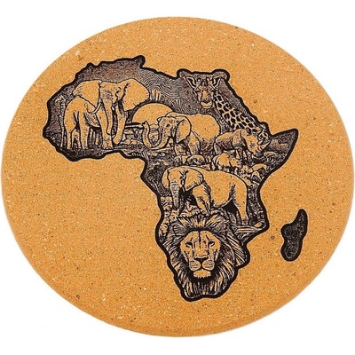 Podložka pod hrnec, korková s gravírováním, síly 8 mm. Průměr 19 cm.