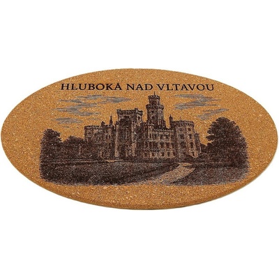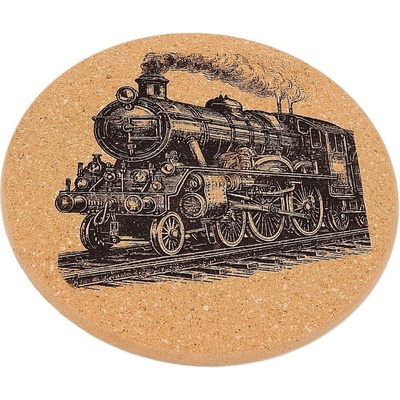 Podložka pod hrnec oválná, korková s gravírováním. Síla 8mm. Rozměry 340 x 180 mm.
