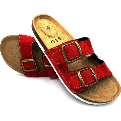 Dámské korkové pantofle s nastavitelnými koženými pásky v červené barvě Korkové pantofle, neboli biopantofle, jsou pantofle s korkovým základem. Jsou součástí šatníku snad...