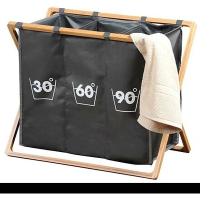 Skládací prádelní koš KESPERSkládací koš na prádlo se třemi přihrádkami na třídění prádla podle teploty praní. Jeho šedá barva a přírodní bambusový rám dodávají elegantní a...