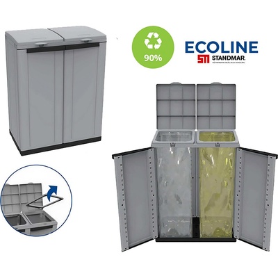 Belli E Forti koš na tříděný odpad TOWER, stohovatelný, šedý, plast, 40 L BF37210