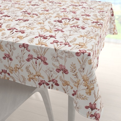 Bavlněný obdélníkový dekorační ubrus na stůl se vzorem vínovo-béžových kosatců na bílém podkladu. Je ušitý z hustě tkaného 100% bavlněného plátna s certifikátem zdravotní...