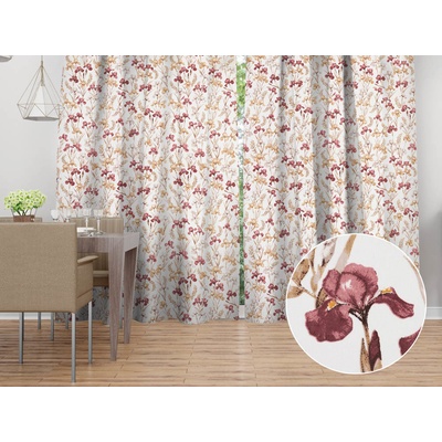Bavlněný dekorační závěs se vzorem vínovo-béžových kosatců na bílém podkladu. Je ušitý z hustě tkaného 100% bavlněného plátna s certifikátem zdravotní nezávadnosti Oeko-Tex 100....