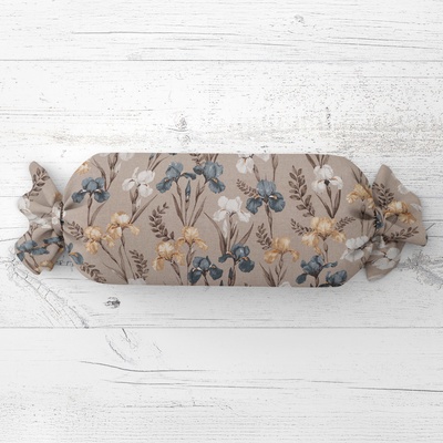 Dekorační válcový polštář „bonbon“ se vzorem modro-béžovo-bílých kosatců na šedobéžovém podkladu. Povlak je ušitý ze 100% bavlněného plátna s certifikátem zdravotní nezávadnosti...