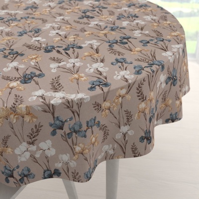 Bavlněný kulatý dekorační ubrus na stůl se vzorem modro-béžovo-bílých kosatců na šedobéžovém podkladu. Je ušitý z hustě tkaného 100% bavlněného plátna s certifikátem zdravotní...