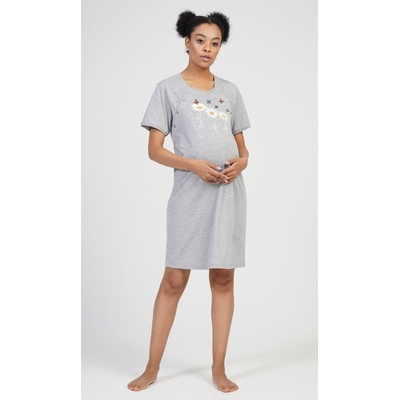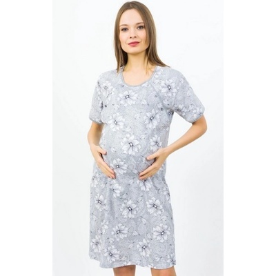 Decentní mateřská noční košile, s krátkým rukávem - po celé noční košili jsou velké květy. Oboustranné rozepínání, na knoflíky, pro snadné kojení děťátka.