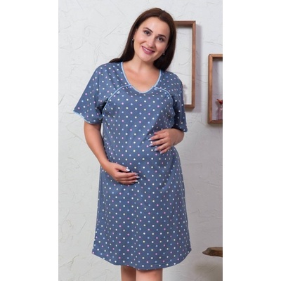 Mateřská noční košile splňuje všechny podmínky pro pohodlné kojení. Má 3/4 rukáv a je vyrobena z šedého materiálu s bílým puntíkem. Materiál: bavlna/polyester