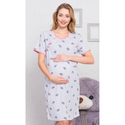 Mateřská noční košile Ježek, s oboustranným rozepínáním na knoflíky, pro pohodlné kojení. Šedá noční košile, s červeným olemováním výstřihu, rozepínání a konců rukávů. Košile je...