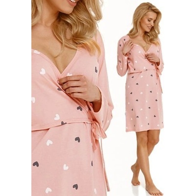 Mon Amour - mateřská noční košile se srdíčky. Oboustranně rozepínaná mateřská noční košile, s krátkým rukávem. Rozepínání je na knoflíky. Celovzorována srdíčky, mezi rozepínáním...