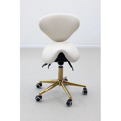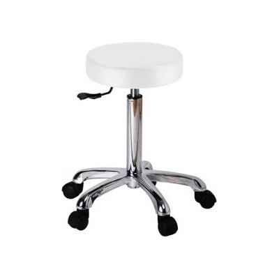 Pohodlná, stabilní kosmetická stolička s opěradlem, s tvarovaným sedákem, na pětihvězdičkové základně s plastovými kolečky.K dispozici v BÍLÉ barvě, nepostradatelný kus nábytku...