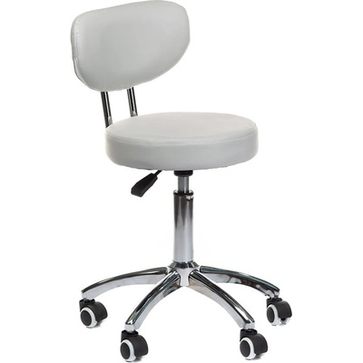 Pohodlná, stabilní kosmetická stolička s opěradlem, s tvarovaným sedákem, na pětihvězdičkové základně s plastovými kolečky.K dispozici v BÍLÉ barvě, nepostradatelný kus nábytku...