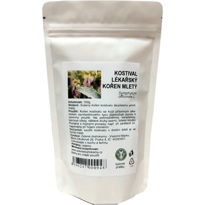 Kostival lékařský kořen jemně mletý 100g. Pro zevní použití. Další názvy: Černý kořen, Kobylí mléko, Volský jazyk, Medunice, lupen sladký. Surovina pro přípravu kostivalové...