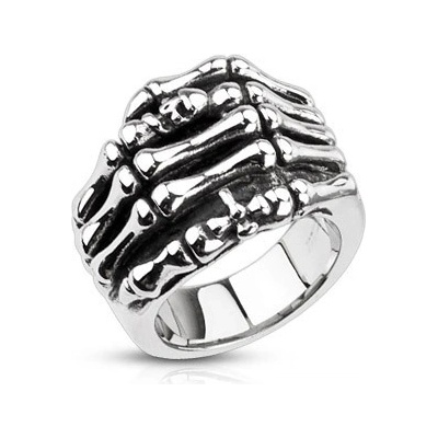 Patinovaný prsten z chirurgické oceli s kostrou ruky.