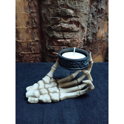 Černý svícen na stůl v podobě černé kostry ruky Kosterní svícen v černé pryskyřici je velmi dekorativní a originální výzdoba na tématické Gotik nebo halloweenské...