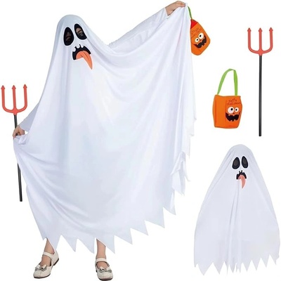 Karnevalový kostým strašidelného ducha pro děti. Souprava obsahuje: pončo s kapucí Velikost: univerzální Materiál: 100% polyester