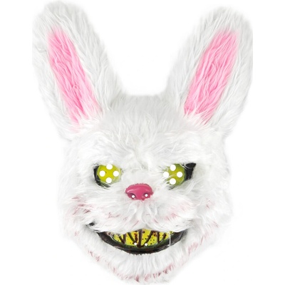 Maska "králičího ducha" pokrytá bílou kožešinou. Krví pokryté zuby a srst kolem tlamy, stejně jako žluté oči, rozhodně odporují obvyklému obrazu tohoto milovaného zvířete -...