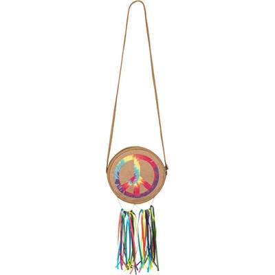 Taška přes rameno Melody (Ø 22 cm) Vraťte se do éry květinové síly s touto barevnou hippie taškou. Kulatý design s mírovým znakem a veselými stuhami dává každému oblečení...