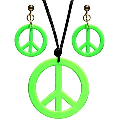 Hippie styl se vyznačuje barevností a právě tím je originální zelený náhrdelník a náušnice se symbolem peace. Sadou náhrdelníku a náušnic stylově doladíte svůj kostým na hippie...