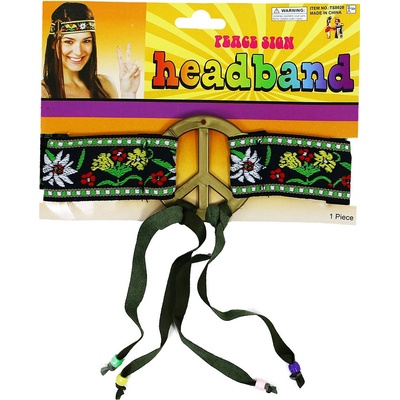Čelenka - Hippies 722910 Stylová čelenka ve stylu HIPPIES. elenka je vyrobena z květinové látky a je dekorována znakem PEACE. Perfektní doplněk na léto, zejména na...