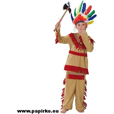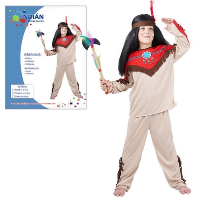 Kostým indián obsahuje halenku, kalhoty, čelenku.Velikost pro malé děti (92 - 104 cm). Materiál polyester.