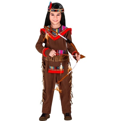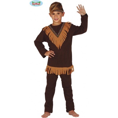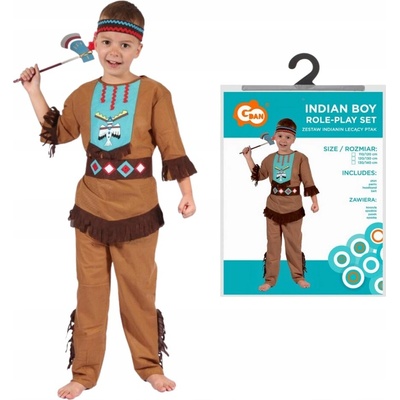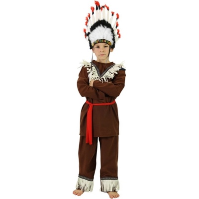 Stylový karnevalový kostým inspirovaný indiánskými motivy! Tento kostým ve velikosti M je ideální pro chlapečky ve věku 6-8 let a výšce 116-128 cm. **Barva**: hnědá...