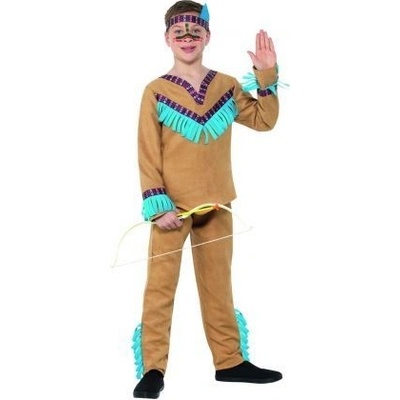 Stylový karnevalový kostým s motivem indiána! Kostým hnědé barvy ve velikosti M je určen pro chlapečky ve věkovém rozmezí 6-8 let. Balení obsahuje horní díl s indiánským vzorem,...