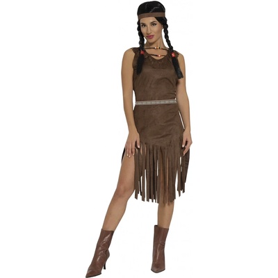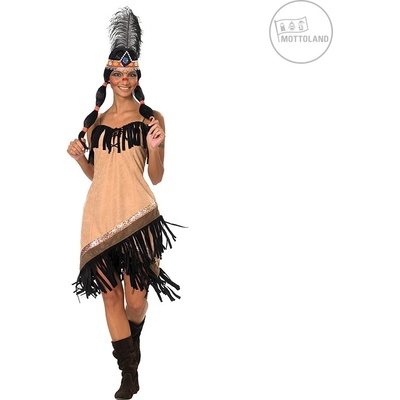 Béžovo-hnědý indiánský kostým pro ženy. Indiánský kostým v klasickém tématu, který nikdy nevyjde z módy. Na každé kostýmové párty se tak můžete proměnit v autentickou indiánku...