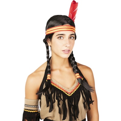 Indiánská copatá paruka s čelenkou a pérem krásně dotvoří váš kostým na indiánku. Ideální na párty karneval nebo tématické akce.