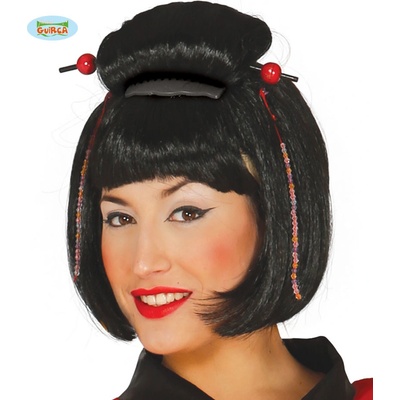 Proměň se během pár vteřin v tajemnou krásku z dálného východu! Paruka Japonka černá je dlouhá, elegantní a díky jemné síťce perfektně drží na hlavě – žádné klouzání při tanci...