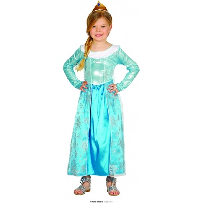 Krásný kostým pro malé slečny Sněhová královna Kostým obsahuje splývavé a třpytivé světle modré princeznovské šaty. Živůtek je vyrobený ze světle modré sametové strečové látky, zdobený třpytivými světle modrými flitry, které vytvářejí duhový efekt. Výstřih je...