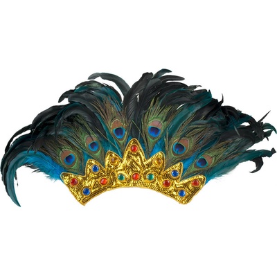 Pokrývka hlavy Rio tanečnice s pavím peřím Ukradněte show s touto úžasnou čelenkou plnou nádherných černých peří a stříbrných flitrů. Perfektní doplněk na letní karnevaly nebo...