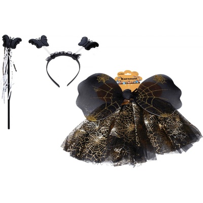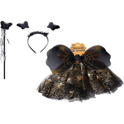 Stylový karnevalový set pro malé víly a motýlky v elegantní černé barvě. Obsahuje vše potřebné pro rychlou proměnu: křídla, sukni (délka 29 cm), kouzelnou hůlku a čelenku....