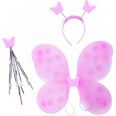 Krásná sada pro malé holčičky! Sada obsahuje růžová křídla zdobená motýlkem, sukýnku s gumou v pase a doplňuje ji kouzelnická hůlka a čelenka s motýlky. S tímto úchvatným...