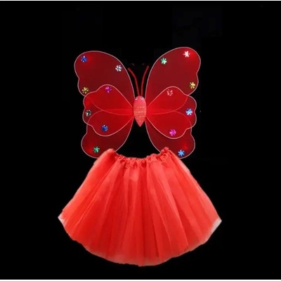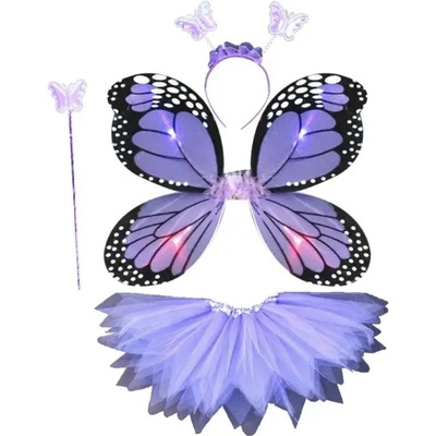 4 dílný set pro dívky se svítícími křídly. Sukýnka je v pase na gumičku, čelenka s tykadly, křídla a kouzelná hůlka. Vhodné pro věk 3-5 let.