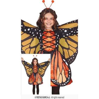 Karnevalový kostým motýl obsahuje šaty, kčídla a čelenku.