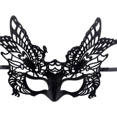 Pevná plastová motýlí maska se sametovým vzhledem Poloobličejová motýlí maska pro dospělé z plastu potaženého černým sametem. Originální doplněk ke kostýmu s motivem benátského...