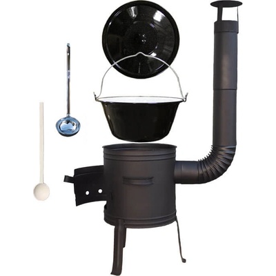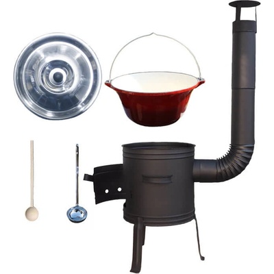 Kotlíková souprava obsahuje: Smaltovaný kotlík. Objem: 10 L. Smaltovaná poklice. Nerezová kotlina. Nerezová naběračka. Vařečka. Kotlíková souprava na outdorové vaření guláše a...