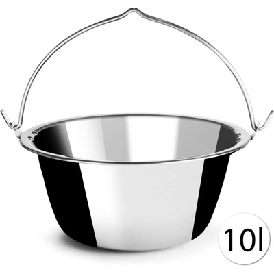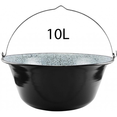 Kovový kotlík smaltovaný na guláš s pozinkovaným kovovým držadlem. Vhodný pro přípravu jídla při táboření v přírodě, u vody nebo v domácnosti.Technické parametry:Objem: 10...