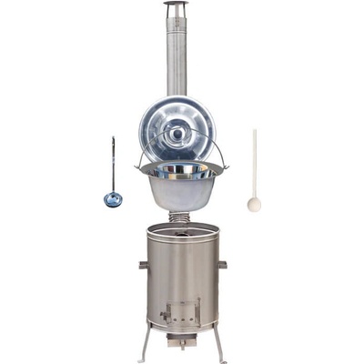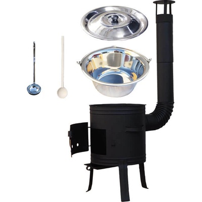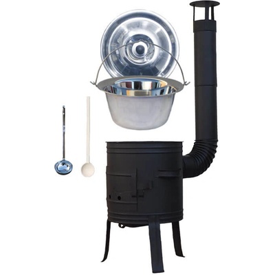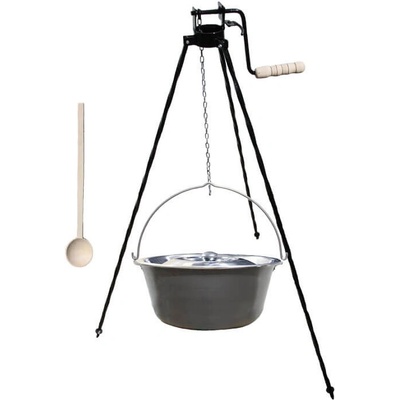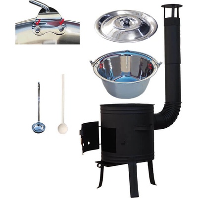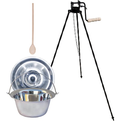 Kotlíková souprava obsahuje: Nerezový kotlík 10 L (1,5 mm). Nerezová poklice. Stojan s pojistný kladkou, délka 1,25 m. Dřevěná vařečka. Materiál: smrk. Kotlíková souprava na...