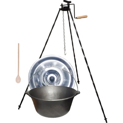 Kotlíková souprava obsahuje: Železný kotlík 10 L. Klasický stojan, délka 1 m. Kotlíková souprava na outdorové vaření guláše a rybích polévek v přírodě, v zahradě nebo v otevřené...