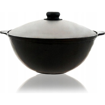 Velký, těžký litinový hrnec s poklicí o hmotnosti 11,5 kgČistá litina bez jakéhokoli chemického "nepřilnavého" povrchu a snese i extrémně vysoké teplotyHrnec má průměr 35,6 cm,...