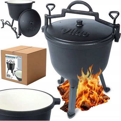 Litinový hrnec s pokličkou a úchopem, na 3 stojných nožičkách. Vhodný pro venkovní vaření na otevřeném ohni. Hrnec je vyroben ze silnostěnné litiny a tak rovnoměrně rozkládá...